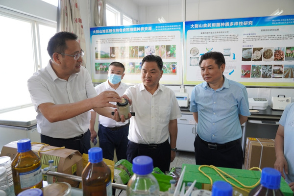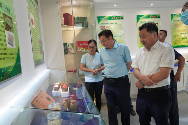 陈志勇参观了我校生物标本馆,详细了解我校在大别山特色动植物种质资源收集与评价、特色种质资源改良与利用及特色资源产教融合等工作进展情况。在经济林木种质改良与综合利用湖北省重点实验室,他认真听取了实验室负责人的汇报,全面了解了我校在食用菌、油茶及黄州萝卜等地方特色种质改良与成果利用转化情况。他充分肯定了我校近年来在农业种质利用与开发推广等方面取得的成绩,高度评价了我校积极利用大别山种质资源开展产学研深度融合的做法,表示省农业农村厅将进一步加大支持力度,支持学校围绕大别山特色资源开展科学研究和社会服务工作,助推黄冈农业农村工作高质量发展。