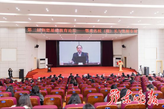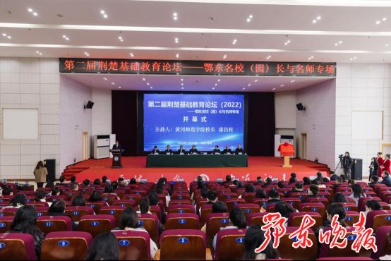 12月10日,由湖北省教育科学研究院、黄冈师范学院主办,黄冈师范学院教育学院、黄冈市教育科学研究院、湖北省高校人文社科重点研究基地鄂东教育与文化研究中心承办的第二届荆楚基础教育论坛(2022)——鄂东名校(园)长与名师专场于黄冈师范学院圆满举行。大会采取线上线下结合的方式进行。来自中国人民大学、华中师范大学、湖北师范大学、黄冈师范学院等高校,黄冈、武汉等地基础教育一线的名校长、名园长、名师,以及本科生、研究生代表等350余人出席线下会议,线上5000余人次观看了网络同步直播。