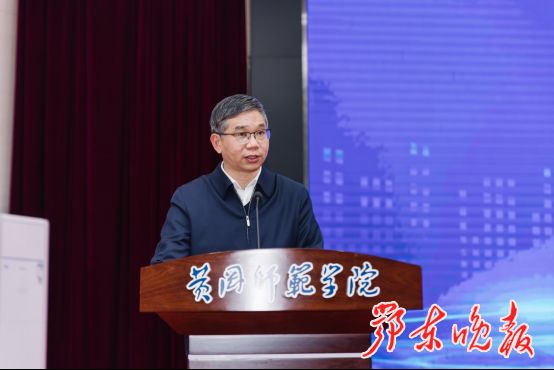 潘国林致辞中说,黄冈市委、市政府历年来高度重视教育事业,坚持把教育摆在优先发展的战略位置,强化保障,不断加大工作力度、投入力度、保障力度,持续推动黄冈教育高质量发展。作为黄冈市唯一的全日制普通本科院校,黄冈市委、省政府也十分重视黄冈师范学院的建设和发展。2019年出台《中共黄冈市委、黄冈市人民政府关于支持黄冈师范学院建设国内一流大学的实施意见》,文件提出“六个支持”:支持持打造立德树人、铸魂育人品牌;支持硕士学位授权单位建设;支持一流学科建设;支持一流师资队伍建设;支持校地共育人才;支持基础设施建设。2021年市政府发文,黄冈市与黄冈师范学院共建黄冈市教师教育综合改革实验区。今年5月,省教育厅、黄冈市政府和黄冈师范学院联合召开了黄冈市教师教育综合改革实验区建设工作推进会,黄冈师范学院抢抓机遇,踔厉奋发,在人才培养、科学研究、社会服务、文化传承和国际交流等方面取得了长足的进步和快速的发展,今人倍感欣慰!其中特别是教育学科和教育学院的发展特别迅速!今年黄冈师范学院不仅在省高等教育教学成果奖获得了3项一等奖,而且在省基础教育教学成果奖获得一等奖,成绩斐然,难能可贵!在其他诸多方面也捷报频传,办学质量持续提升。