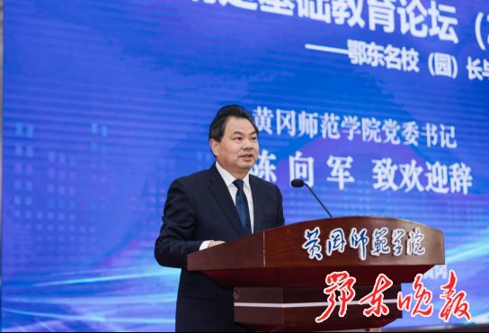 黄冈师范学院党委书记陈向军欢迎致辞,在全国上下深入学习贯彻党的二十大精神之际,由湖北省教育科学研究院、黄冈师范学院主办,黄冈师范学院教育学院、黄冈市教育科学研究院承办的“第二届荆楚基础教育论坛”,以线上线下相结合的方式举行。本次会议的主题“中国式基础教育现代化推进与建设研究”,恰逢其时,具有特殊的重要意义。长期以来,学校高度重视教育学科和教育学院的建设和发展,不断加大人才引进和经费保障力度,学科实力和学院办学水平持续快速提升。尤其是在2022年10月,黄冈师院教育学院与浠水县闻一多中学、蕲春县李时珍中学合作的成果《农村高中“名人文化”校本课程育人实践的黄冈经验》获得湖北省基础教育成果奖一等奖,并已进入国家基础教育成果奖评选序列,充分展现了我校教师教育与黄冈基础教育深度融合、共建共享、合作共赢的大格局和高站位。这次论坛成立黄冈基础教育发展研究院,目的在于进一步深化与黄冈基础教育领域的合作共赢,服务地方,推动黄冈师范学院及黄冈市基础教育高质量发展。以此次论坛为契机,向各位专家学者虚心请教,广纳真知灼见、广聚学术资源、广交学术朋友,促进我校教育学科专业更好更快发展,为建设“全省一流、全国知名”高水平师范大学添助力、增动力、聚合力;真诚希望与会专家学者聚情、聚智、聚力,毫无保留地传授经验、分享收获、交流思想,产出更多高质量研究成果,为推进中国式现代化基础教育创新发展做出更大的贡献。