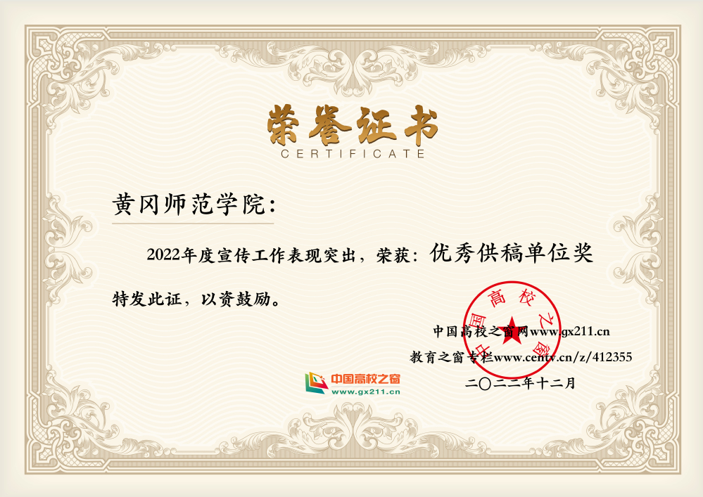 本网讯 近日,从中国高校之窗获悉,我校在2022年教育新闻宣传工作方面表现突出,被授予“优秀供稿单位奖”荣誉称号。