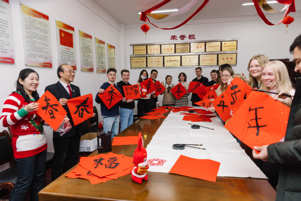 本次联欢活动采取线上+线下方式进行,内容丰富,形式新颖。活动期间先后进行了中国传统的书写新春对联展示,剪纸、窗花等手工艺品制作以及留学生家乡美食、中国新春佳节传统文化讲解。还通过视频连线,对在斯里兰卡孔子课堂的刘海老师和在俄罗斯的留学生致以佳节问候。最后大家一起包饺子,吃汤圆,共享中国美食。
