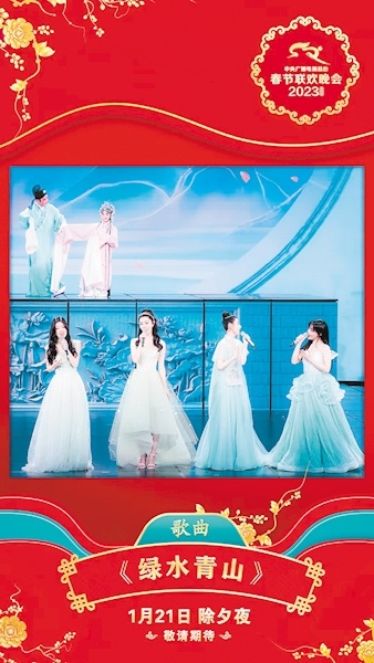 当晚8时35分,歌曲《绿水青山》作为春晚第7个节目亮相。这首歌由中共湖北省委宣传部、省文联等联合出品,湖北省音协副主席谭旋作曲,武汉籍音乐人段思思作词。