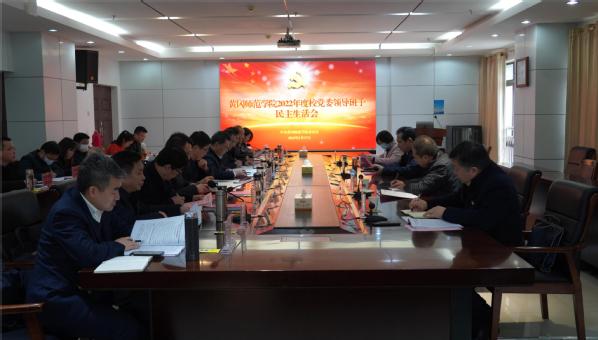 本网讯 根据省、市委的统一部署,2月17日下午,校党委领导班子在厚德楼四楼二号会议室召开2022年度民主生活会。会议主题是全面贯彻习近平新时代中国特色社会主义思想,深入贯彻落实习近平总书记关于湖北工作的重要讲话和指示批示精神,深刻领悟“两个确立”的决定性意义,增强“四个意识”、坚定“四个自信”、做到“两个维护”,团结带领全校党员干部群众锚定建设“全省一流、全国知名”高水平师范大学的目标任务,以奋发有为的精神推动党的二十大作出的重大决策部署在学校落地见效。