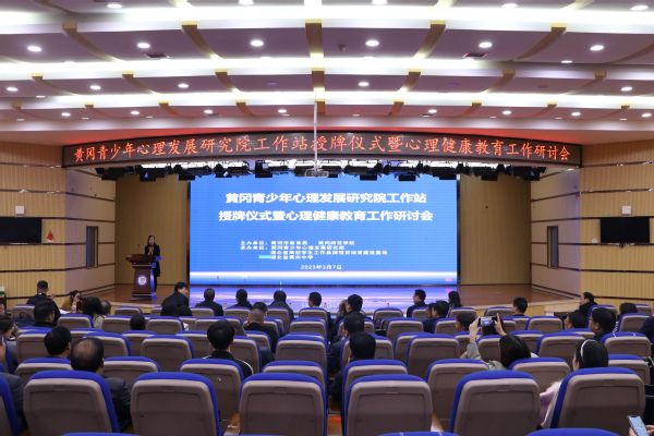 本网讯 3月7日上午,黄冈青少年心理发展研究院工作站授牌仪式暨心理健康教育工作研讨会在黄州中学举行。校党委副书记陈朝阳、市教育局副局长皮建明出席会议。
