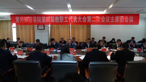 本网讯 4月7日下午,黄冈师范学院第四届教职工代表大会第二次会议在厚德楼学术交流中心召开。校党委书记陈向军,党委副书记、校长漆昌柱等全体校领导出席会议。会议由校党委副书记、工会主席王基家主持。