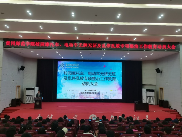 教育动员大会播放了校园摩托车、电动车乱停乱放视频。黄冈市交警支队黄州大队教导员陶德学给在场师生宣讲摩托车、电动车骑行法律法规及无牌无证、乱停乱放安全危害。保卫处处长张国文解读了《关于开展校园摩托车、电动摩托车、电动自行车无牌无证及乱停乱放专项整治工作方案》并布置相关工作。