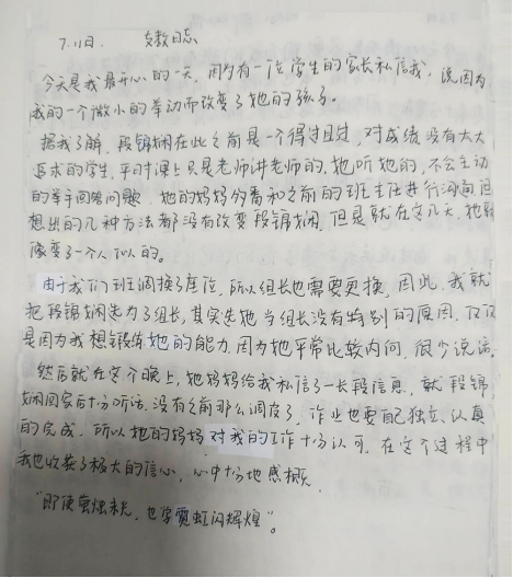 7月11日,今天是我最开心的一天,因为有一位学生的家长私信我,说因为我的一个微小举动而改变了他的孩子……