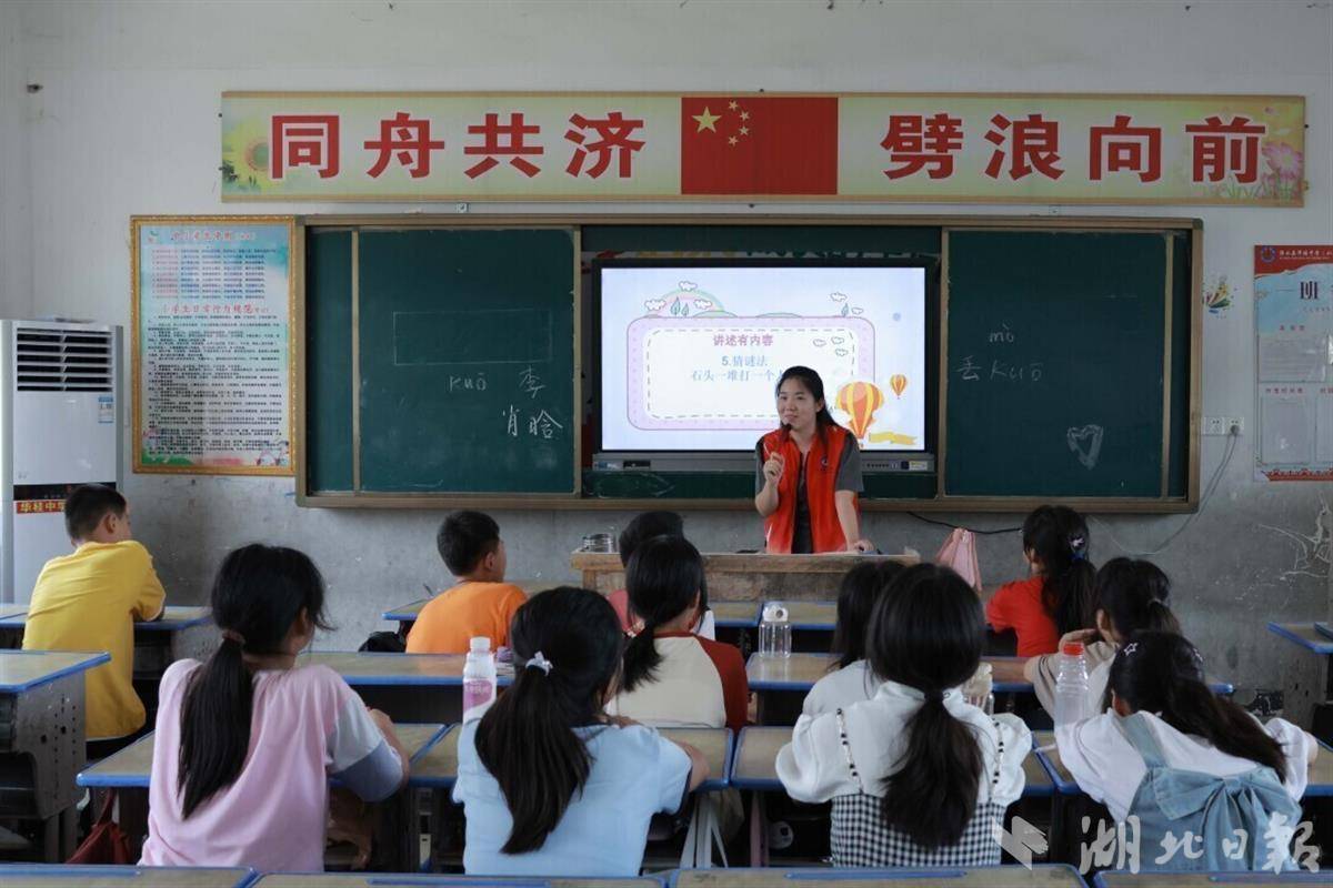 7月2日,黄冈师范学院新闻与传播学院“红丝带·爱连爱”公益服务团队21名志愿者,来到浠水县团陂镇华桂学校,开展2023年“圆梦工程”服务农村未成年人传承优秀传统文化志愿服务,为孩子们带来“七彩假期”开班第一课。