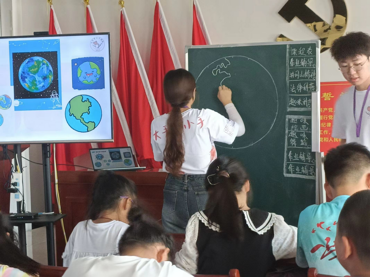 7月,在出发去实践基地之前,黄冈师范学院大手牵小手公益团队早早的就将教具准备好,精心为小朋友们带来生动有趣的地理小课堂。课堂上,志愿者们认真地讲解着地理科普小知识,小朋友们望着志愿者手中的地球仪,纷纷提问:“老师,中国在哪个大洲” “老师,我们离哪个海洋最近”“老师,为什么地球是蓝色的”......那一双双渴望知识的眼睛,让志愿者们体会到了成为一名教师的意义。