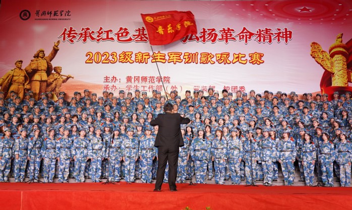 9月25日晚,“传承红色基因,弘扬革命精神”2023级新生军训歌咏比赛在博学楼广场举行。黄冈师范学院党委书记陈向军,党委副书记、校长漆昌柱等校领导莅临现场指导观摩。