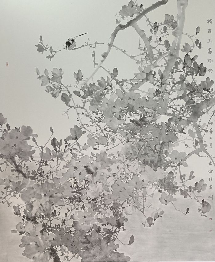 《逸韵和光——2023·中国画作品展》是由中国美术家协会、江苏省文联、无锡市人民政府联合主办的国家级美术作品展,面向全国征稿。这个展览初评入围作品263件,经过复评,最终入选作品98件,美术学院柯希仑老师的作品《独占上春时》经过激烈竞争,入选该展览。