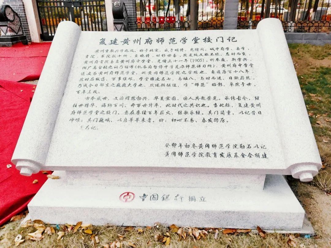 方今盛世,文治煟然勃兴,华夏宏图,国人共赴荣光。承传古今,继往世精华,海纳百川,开万世升平,此时代之共识也。当此际,复建黄州府师范学堂之校门,意在赓续百年薪火,弦歌永继。其门简重,以记昔日峥嵘;其门巍峨,以启莘莘来者,曰:初心不易,奋发踔厉。