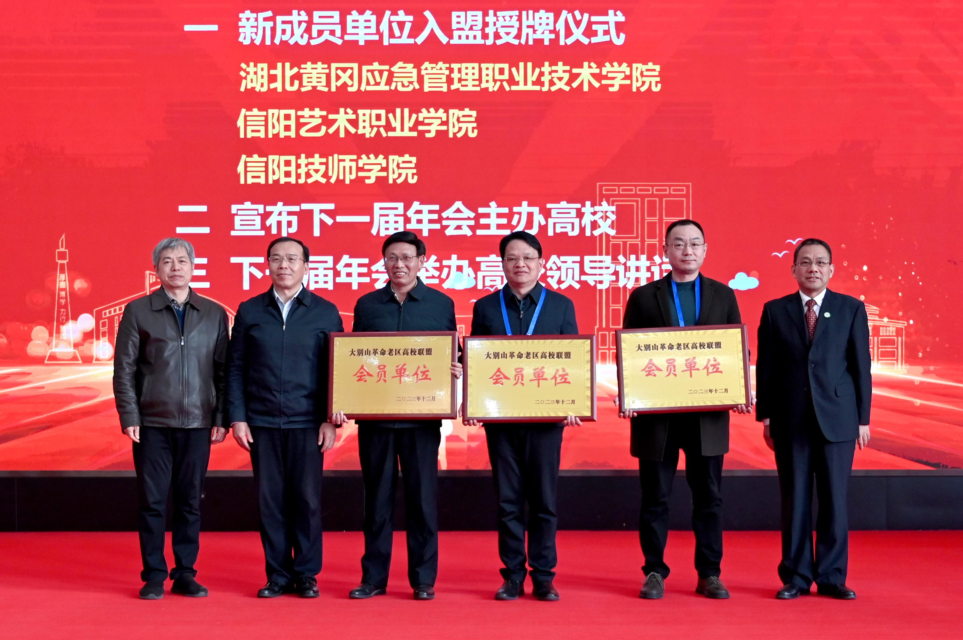 活动中,举行了新成员单位入盟仪式,黄冈应急管理职业技术学院、信阳艺术职业学院以及信阳技师学院新加入联盟,联盟从之前的19所高校增长为22所高校。