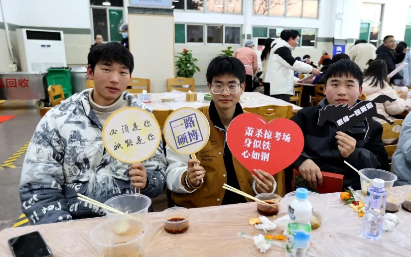 活动现场,还特邀了即将踏入研究生考场的考生代表。 “考研帮”们酣畅地吃着饺子,学校还为他们送上了定制的祝福和礼物,红色的笔、本子及书签……贺卡上写着“金榜题名”、“逢考必过”等美好祝愿。