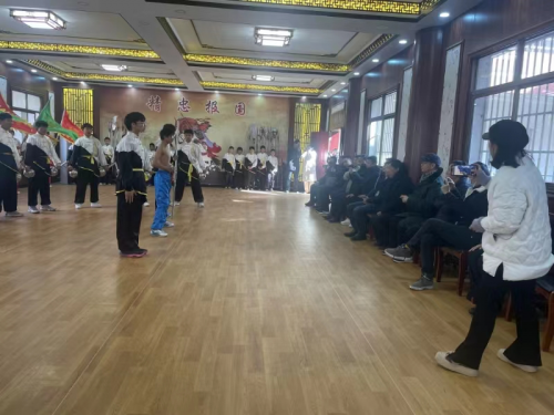 2023年12月26日,黄冈市委统战部副部长张以标、四级调研员董志红、黄冈师院徐金陆院长等一行11人,来武穴岳飞武校调研国家级非遗文化遗产——岳家拳。国家非遗国家级传承人张业金,岳飞文武学校领导班子成员邹时新、吴伟强主任等五人在校大门热情的迎接领导们的一行到来。