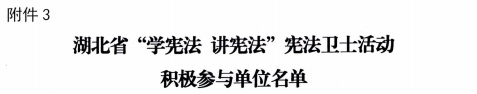 本网讯 近日,湖北省教育厅通报了全省教育系统2023年度开展宪法学习宣传教育活动的情况,并对全省各级各类学校在“学宪法·讲宪法”系列活动中获奖的个人和单位进行表彰。我校1名学生获素养竞赛奖,1名教师获指导奖,学校荣获2023年度宪法卫士活动积极参与单位。