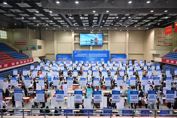 3月30日,“湖北百校联动”高校毕业生供需见面会暨2024届毕业生春季供需见面会在黄冈师范学院体育运动中心举行,本次招聘会共有210家用人单位参加,提供了超过11000个就业岗位,涉及教育、机械、制造、信息技术、金融类等多个行业领域。其中,阳新县人社局、仙桃市教育局、黄石开发区铁山区人社局等组织多家单位组团参加。