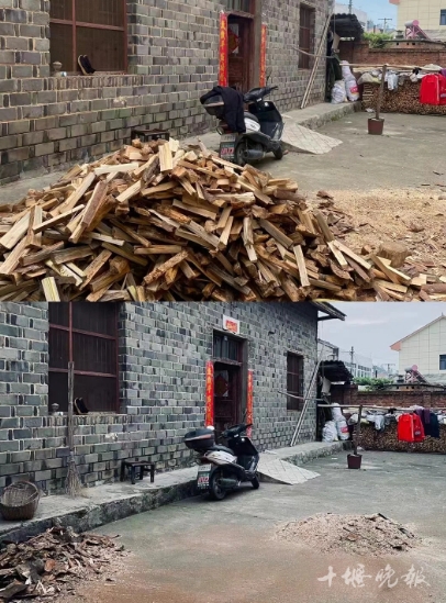 原本空荡的门前小院里被劈好的柴火堆满。