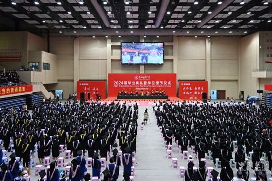 6月14日上午,黄冈师范学院2024届毕业典礼暨学位授予仪式典礼通过线上线下相结合的方式在南校区体育运动中心主馆举行。4691名本科毕业生、230名研究生毕业生将奔赴新征程。