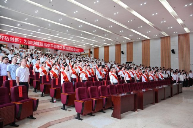 7月1日,黄冈师范学院召开庆祝中国共产党成立103周年暨“七一”表彰大会。校党委书记陈向军出席大会并强调,全校各级党组织和广大共产党员要更加紧密地团结在以习近平同志为核心的党中央周围,以更加坚韧的党性作风、更加昂扬的精神状态、更加豪迈的雄心壮志,在“全省一流、全国知名”高水平师范大学建设新征程中奋楫扬帆、破浪前行,奋力开创黄冈师范学院更加美好的明天。校党委副书记陈朝阳主持会议。全体在家校领导出席会议。