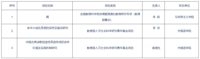 本次全国教育规划课题港澳台教育研究专项共立项9项,黄冈师范学院是唯一获批该类项目的湖北高校。获批的2项教育部人文社会科学研究青年基金项目均属语言学学科。