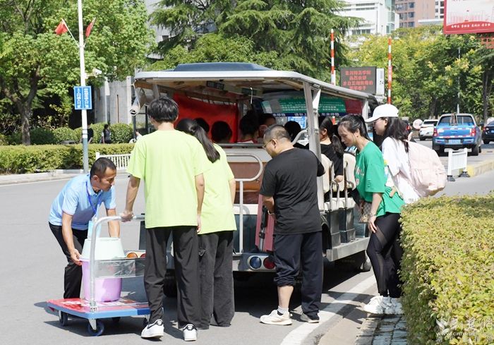 完成报到手续后,新学子们带上行李,乘坐观光车直达宿舍,同时,也开启了他们的校园探索之旅。记者发现,这些校车观光车不仅外观新颖、内饰舒适,司机还饶有兴致地为新学子们详细介绍校园的历史沿革、建筑风格、教学设施以及各个学院的特色。