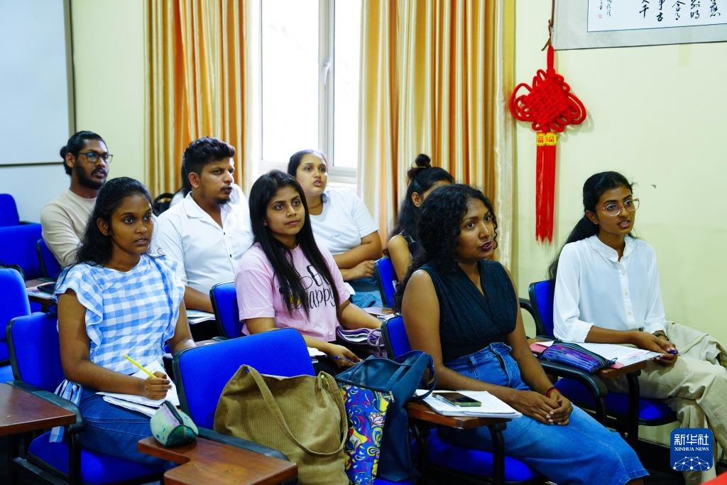 9月4日,在位于斯里兰卡中央山脉南麓的萨伯勒格穆沃大学,孔子课堂汉语专业的学生们在听课。新华社记者 伍岳 摄