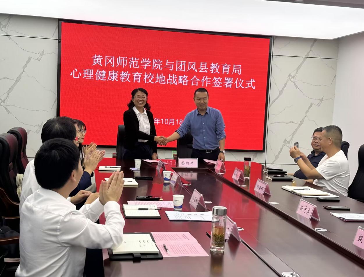 本网讯 10月18日上午,我校与团风县教育局于团风县会议中心举行心理健康教育校地战略合作签署仪式。校党委副书记陈朝阳等出席仪式。