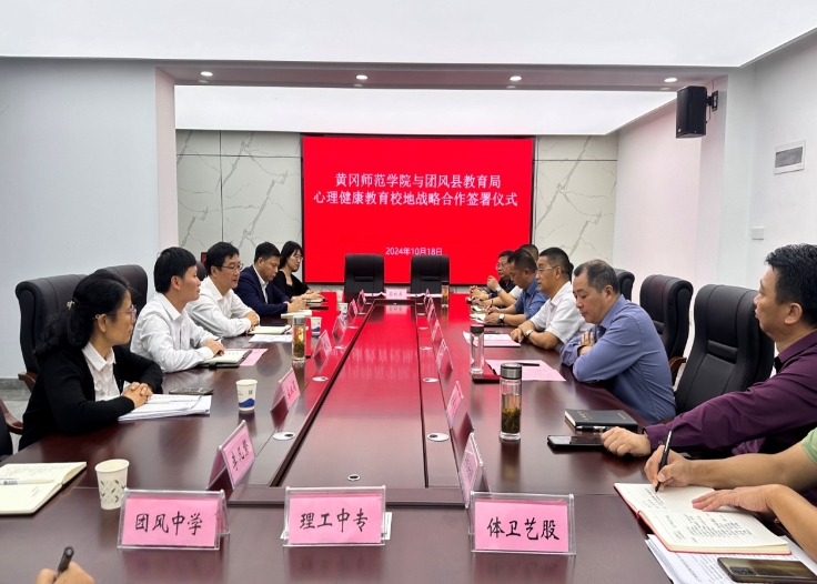 10月18日上午,黄冈师范学院与团风县教育局于团风县会议中心举行心理健康教育校地战略合作签署仪式。校党委副书记陈朝阳等出席仪式。