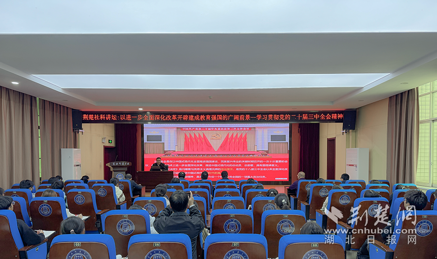 10月22日,由湖北省社科联主办的“荆楚社科讲坛”学习贯彻党的二十届三中全会精神系列专题讲座在黄冈师范学院开讲,湖北省社科专家宣讲团成员,黄冈师范学院党委常委、副校长兼马克思主义学院院长宋文生围绕“以进一步全面深化改革开辟建成教育强国的广阔前景”主题,权威解读全会精神实质和内涵要义。讲座由黄冈师范学院科研处处长黄晓敏主持。
