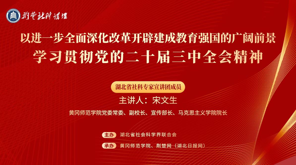 湖北省社科专家宣讲团成员,黄冈师范学院党委常委、副校长兼马克思主义学院院长宋文生围绕“以进一步全面深化改革开辟建成教育强国的广阔前景”主题,权威解读全会精神实质和内涵要义。