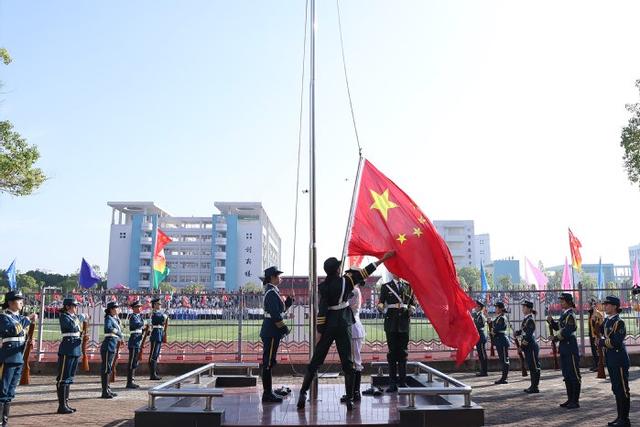 随着雄壮的国歌声响起,五星红旗在全体师生的注目礼中缓缓升起。国旗护卫队、学院代表队、裁判员代表队依次入场。他们洋溢着青春的活力,气势磅礴,步伐矫健划一,接受主席台检阅。