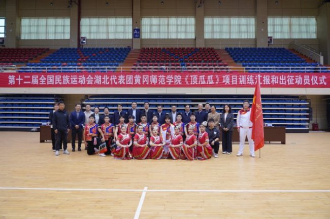 11月5日上午,第十二届全国少数民族传统体育运动会湖北代表团黄冈师范学院《顶瓜瓜》项目训练汇报和出征动员仪式在体育运动中心主馆举行,全体在家校领导观看了汇报演出并给与指导。