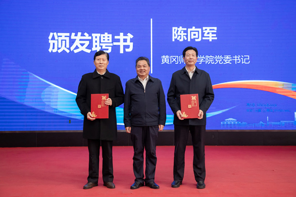 陈向军、孙璜清、王建明、周锦平为黄冈师范学院校友会黄州分会揭牌。