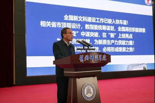 11月28日下午,黄冈师范学院第三届本科教育教学节开幕式暨主题报告在南校区学术交流中心隆重举行。本次教育教学节的主题为“人工智能赋能本科教育教学高质量发展”,首场主题报告由教育部高等教育司原二级巡视员、人文社科教育处原处长张庆国同志开讲。