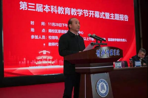 在开幕式环节,校党委书记陈向军在会上发表了重要讲话,黄冈市委教育工委委员、市教育局党组成员、副局长丁意辉为开幕式致辞,校党委常委、副校长夏庆利介绍本次本科教育教学节的活动安排,党委副书记、校长漆昌柱主持开幕式。