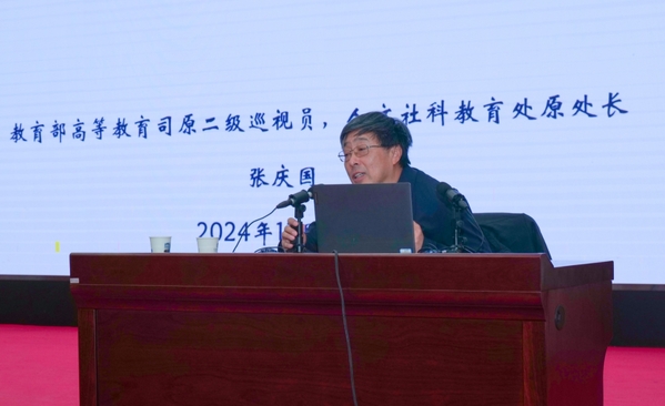 本次报告详细阐述了高校推进课程思政高质量建设的具体举措和有效方法,并着重强调,课程思政要如同盐溶于水一般,自然而然地融入教学之中,深入人心。报告还解读了国家建设教育强国的理念,特别是教育部对于新文科建设的部署,全面介绍了新文科建设中的创新举措,并进一步凸显了创新在新文科建设持续进展中的核心作用。张庆国同志的报告站位高远、论述深刻,促进听众领略到了课程思政与新文科建设的丰富内涵和独特魅力,为本科教育教学改革提供了全新思路,为该校教育事业的发展注入了新的活力。