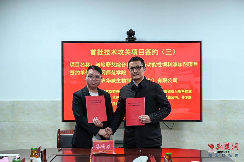 揭牌仪式上,活动现场,黄冈师范学院党委副书记、校长漆昌柱和黄冈市科技局党组书记姜宽分别为省级重点实验室学术委员会专家颁发聘书。重点实验室分别与湖北卫尔康现代中药有限公司、农华威生物制药(湖北)有限公司等6家企业签订产业关键技术攻关项目协议。项目涵盖道地药材多个研究与开发领域的技术攻关,总项目经费达370万元。