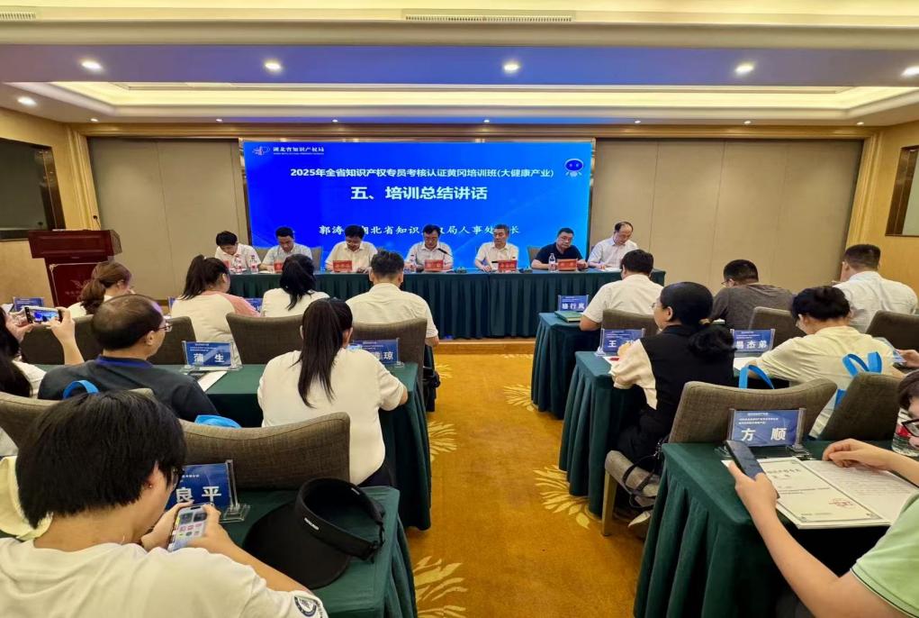 本网讯 7月2日-4日,2025年湖北省“大健康”产业知识产权专员考核认证培训班在我校成功举办,来自武汉、黄冈、黄石、鄂州、咸宁、孝感等地大健康产业链企业及高校教师代表共计129人参训。副校长马志斌出席结业仪式并为优秀知识产权专员颁奖,省知识产权局、黄冈市市场监督管理局(知识产权局)、学校科研处、政法学院有关负责同志参加开班和结业仪式。