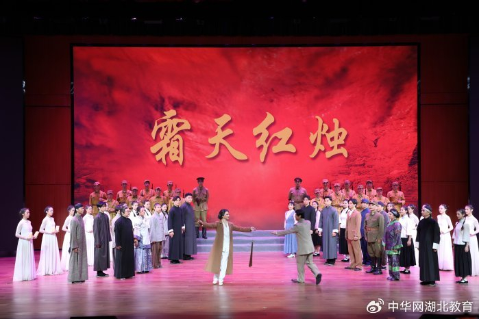 “学堂遍黄冈,处处读书声。初心似红烛,不畏霜天永放光明。”10月11日晚,黄冈师范学院90余名师生携大型原创黄梅戏《霜天红烛》走进安徽省六安市皖西学院,为该校师生奉献了一堂别样的大别山精神“大思政课”。