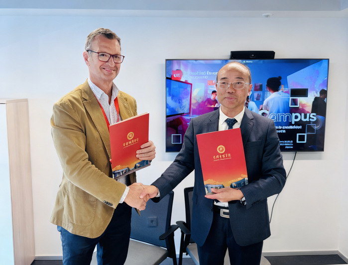 代表团先后访问了庞培法布拉大学和马德里欧洲大学,实地考察了两校教学设施与办学环境,深入了解语言与翻译、新闻传媒、体育管理、创意设计、商科专业等优势学科专业的建设情况。在座谈会上,夏庆利重点介绍了黄冈市的区位优势、人文底蕴及经济社会发展情况,全面展示了我校的办学历史、办学现状、学科特色和国际交流合作成果,并与两校校领导进行了深入交流,诚邀两校领导出席我校建校120周年庆祝活动。双方围绕中外合作办学、交换生等项目展开会谈,就联合培养、学术交流、师生互访等方面达成共识。夏庆利代表我校与马德里欧洲大学创意校园负责人Luis Calandre Burgueros签署了合作谅解备忘录,标志着两校正式建立合作伙伴关系。
