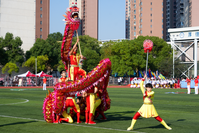 开场节目表演精彩纷呈:舞龙舞狮气势如雷,瞬间点燃全场热情;瑜伽表演身姿舒展,意境优美;武术表演招式中正,尽显传统之美;校园健身操动感十足,展现黄师学子昂扬向上的精神面貌。而机器人的闪亮登场,为运动会注入了硬核科技感。