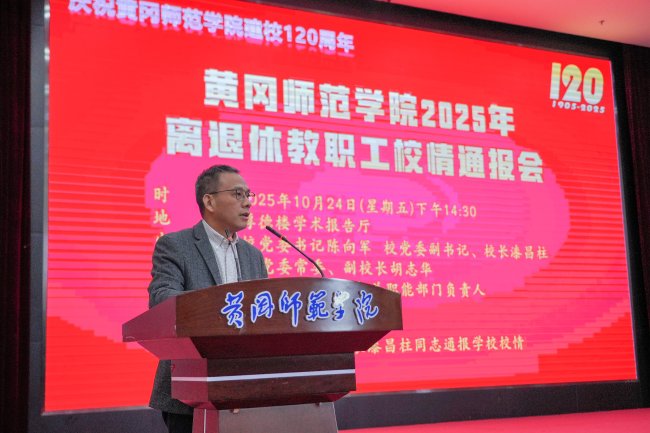 金秋送爽,叠翠流金,山河锦绣。10月24日下午,在庆祝黄冈师范学院建校120周年暨重阳佳节来临之际,黄冈师范学院在厚德楼学术交流中心举办离退休教职工校情通报会暨“百廿华章 薪火相传”金秋文艺汇演。校党委书记陈向军,党委副书记、校长漆昌柱,党委常委、副校长胡志华及退休校领导出席活动。胡志华主持校情通报会。