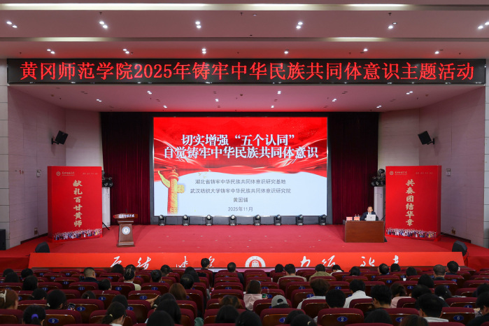 武汉纺织大学铸牢中华民族共同体研究院院长黄国辅教授受聘为我校客座教授,并以《切实增强“五个认同”,自觉铸牢中华民族共同体意识》为题作了专题宣讲报告。黄国辅从“五个认同” 的核心要义切入,深入剖析增强认同、铸牢意识的实践路径与保障机制,为大家提供了扎实的理论基础与实践指导。
