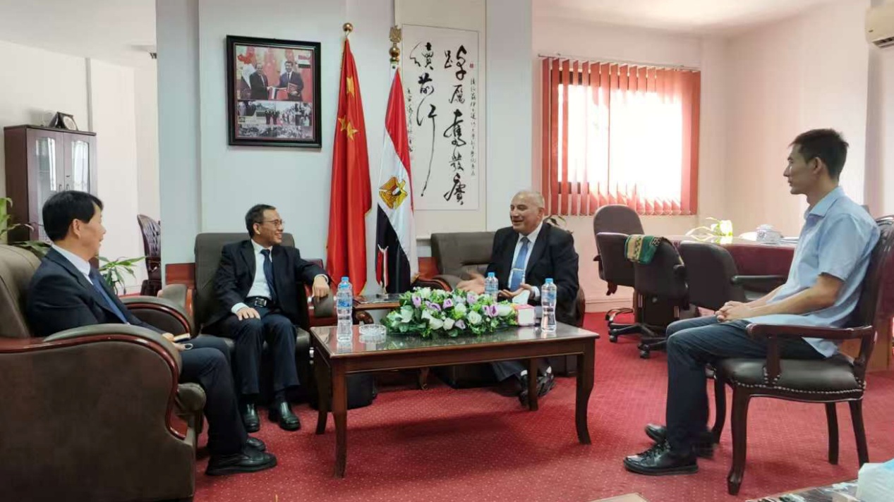 在埃及科技大学,该校外国语与翻译学院院长、前埃及驻华大使馆文化参赞Hussein Ibrahim教授接待了漆昌柱一行。座谈会上,双方分别介绍了各自学校的基本情况及办学优势,并围绕国际中文教育、汉语及其他专业本科生、硕士研究生联合培养以及交换生和暑期夏令营等合作项目开展深入交流并达成共识。双方拟于近期就达成共识事项签署合作协议。