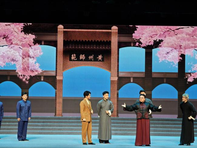 11月14日晚,黄冈师范学院原创大型黄梅戏音乐剧《霜天红烛》在红安县影剧院成功展演。浙江省发改委党组成员、副主任骆方豪,宁波市发改委党组成员、二级巡视员吴军,黄冈市发改委党组书记、主任蔡伟,黄冈师范学院党委副书记王基家,红安县委书记胡广,红安县委副书记、代县长钟林等观摩演出。