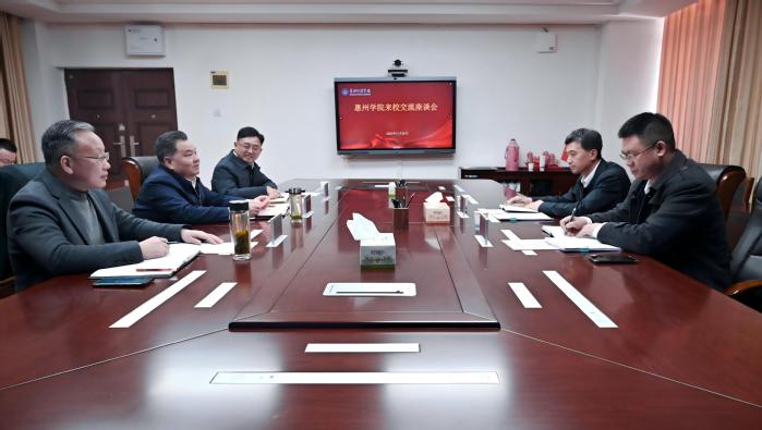 本网讯 11月26日,惠州学院党委副书记、校长王胜一行来校交流。校党委书记陈向军,党委常委、副校长胡志华出席交流座谈会。