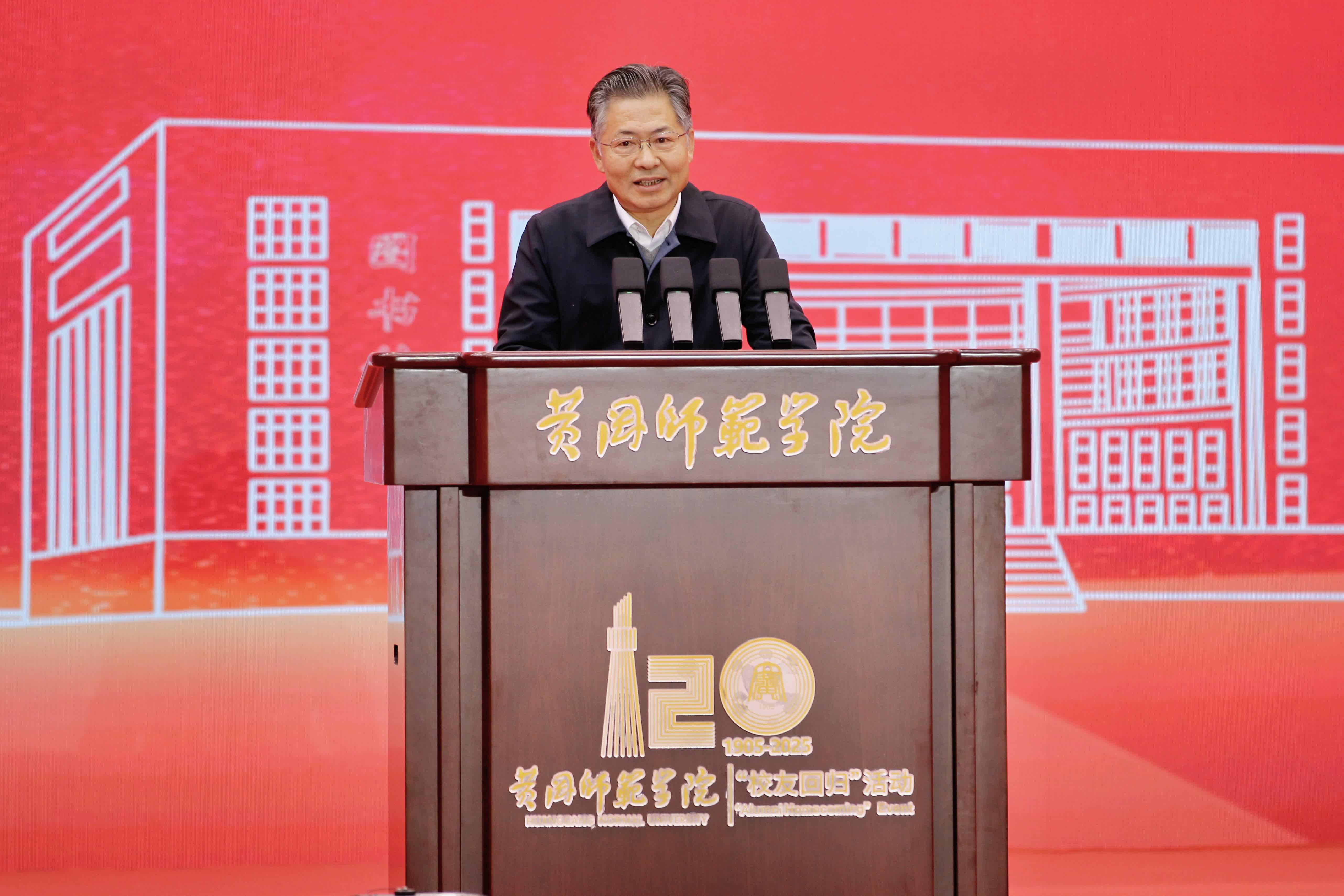 湖北省政府教育督導室副主任督學王文森對黃岡師範學院120年的辦學成就給予高度評價。他致辭指出,黃師始終扎根鄂東革命老區,牢記「爲黨育人、爲國育才」使命,實現了從專科、本科到研究生教育的辦學層次跨越,入選全省首批教師教育改革試驗區,培養的大批優秀人才成爲基層教育與地方發展的中堅力量,爲區域教育發展和經濟社會進步作出了重要貢獻。