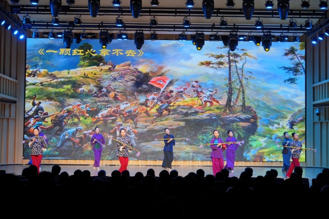 音乐党课以“红旗漫卷大别山”为主题,以新民主主义革命为脉络,通过9首红色歌谣串联“先驱播火,唤起工农跟党走”“不胜不休,苏区红军勇战斗”“孤悬敌后,抗日劲旅歼倭寇”“勇当前锋,千里跃进利剑飕”四个篇章,采取“听红歌—学党史—悟思想—见行动”的内在逻辑,以艺术的形式再现“大别山28年红旗不倒”波澜壮阔的革命历史,生动诠释了大别山精神的核心内涵。